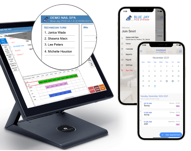 Thanh toán, quản lý mặt hàng, quản lý khách hàng, thiết lập dễ dàng phù hợp với nhu cầu sử dụng. Tương thích nhiều thiết bị. Tất cả đều được tích hợp với Blue Jay Salon POS